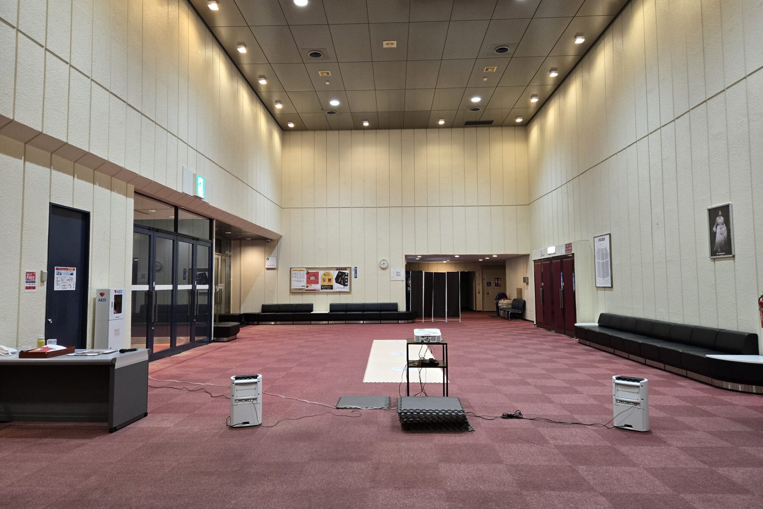 大ホールロビーの白壁にプロジェクターで映像を投影します。📽️👀