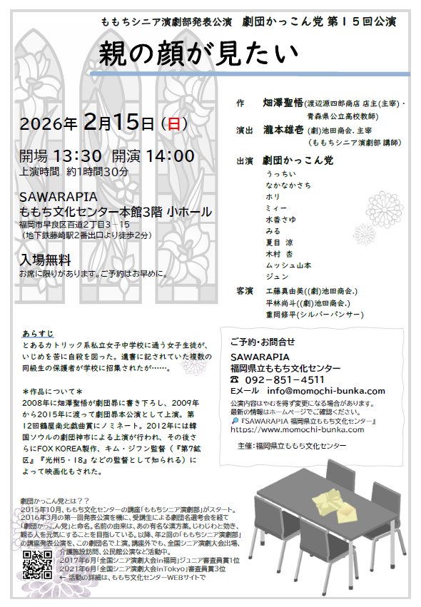 ももちシニア演劇部発表公演 劇団かっこん党 第15回公演「親の顔が見たい」