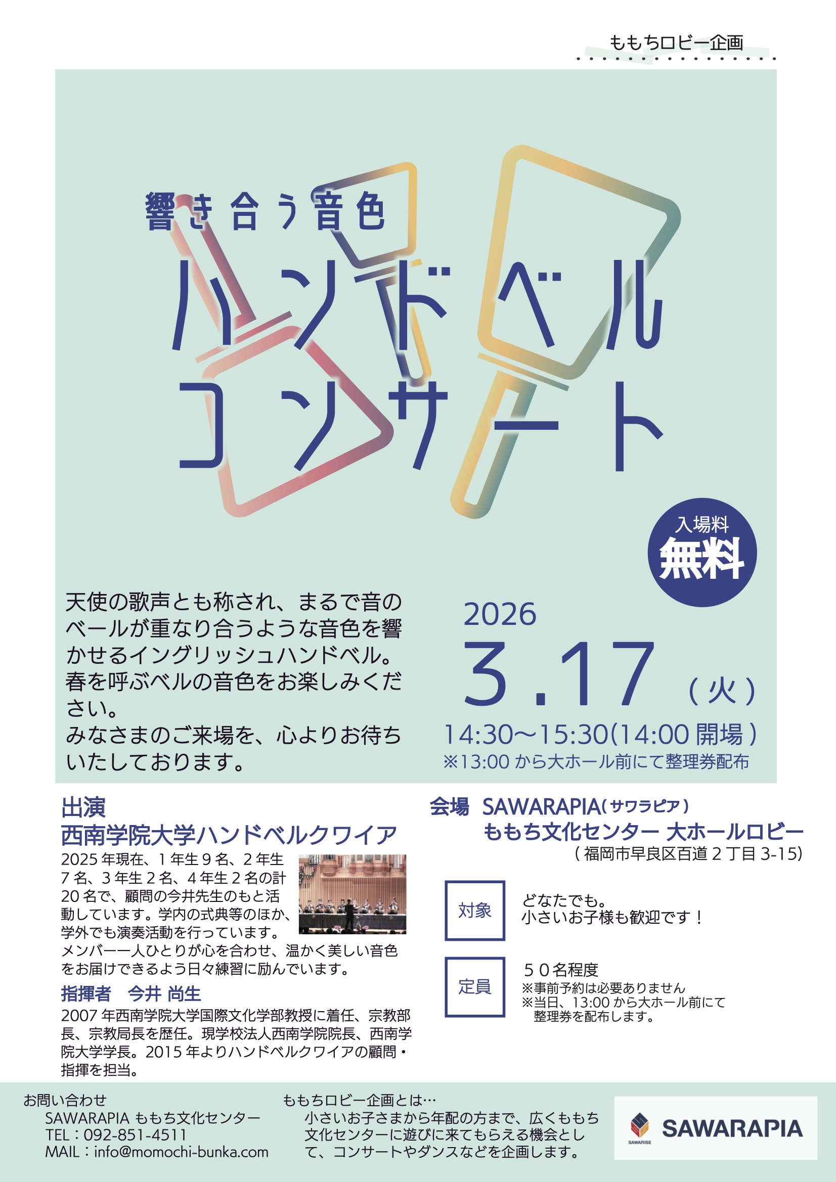 今年度のももちロビー企画、締めくくりはハンドベルの演奏です!